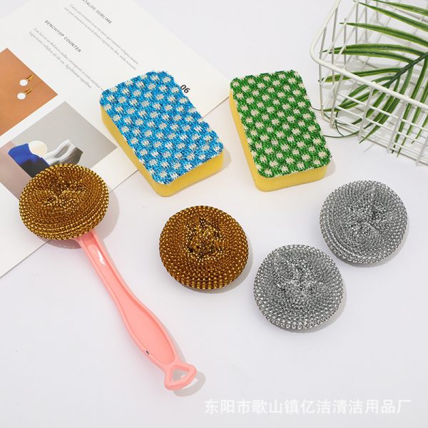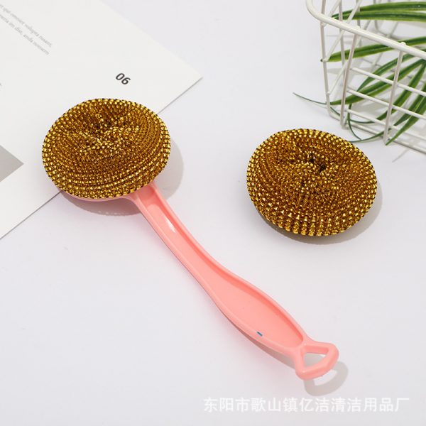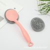 New Household Kitchen Hanging Bowl and Dish Cleaning Brush Long Handle Multi color Detachable Steel Wire Ball Brush