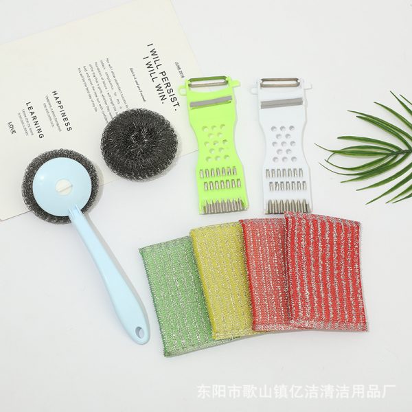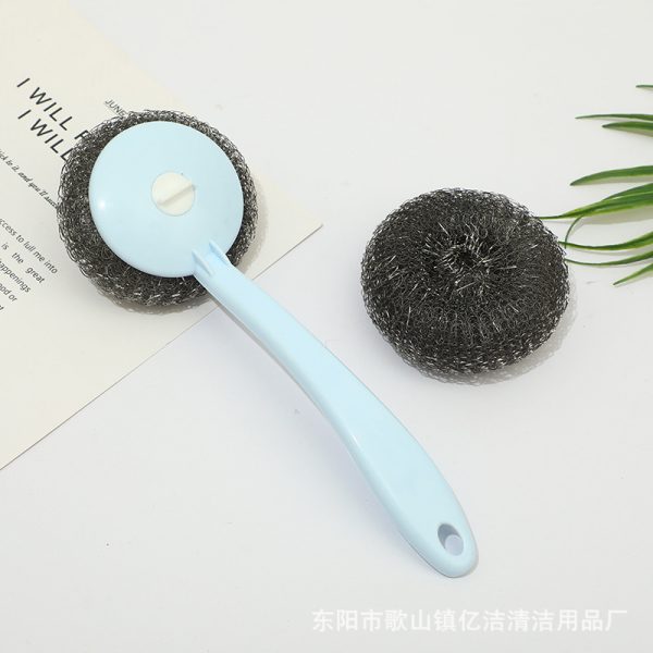 New Steel Wire Brush Long Handle Pot Brush Steel Wire Ball Multi functional Peeling Tool Household Kitchen Combination Set